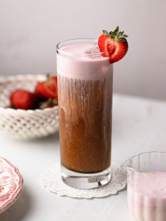 Garnish: Heart-shaped strawberry slice