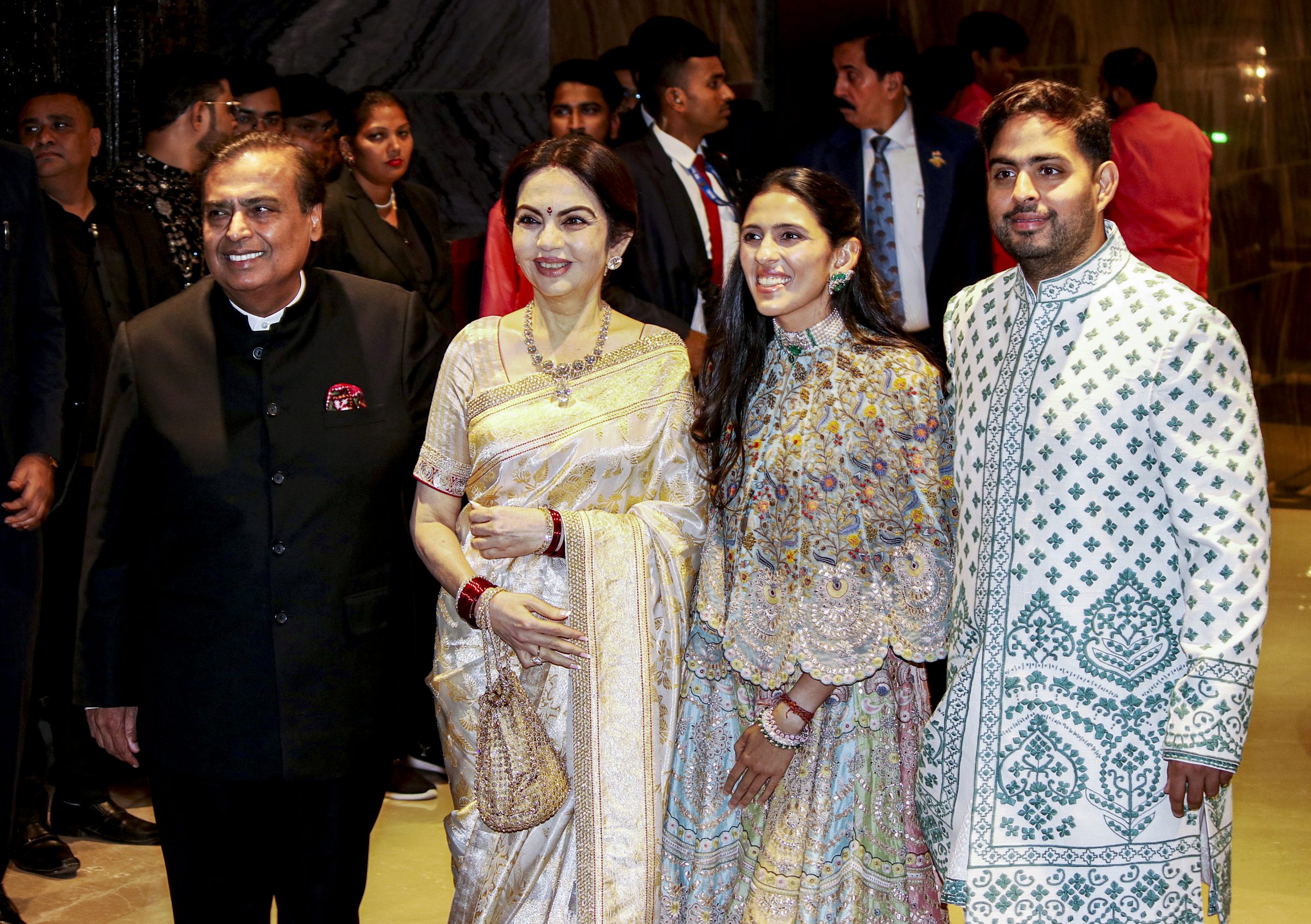Abhishek Bachchan and Aishwarya Rai Bachchan also made an appearance at the wedding, as did the Ambani family, including Reliance Industries Chairman Mukesh Ambani with his wife Nita Ambani, as well as son Akash and his wife Shloka.