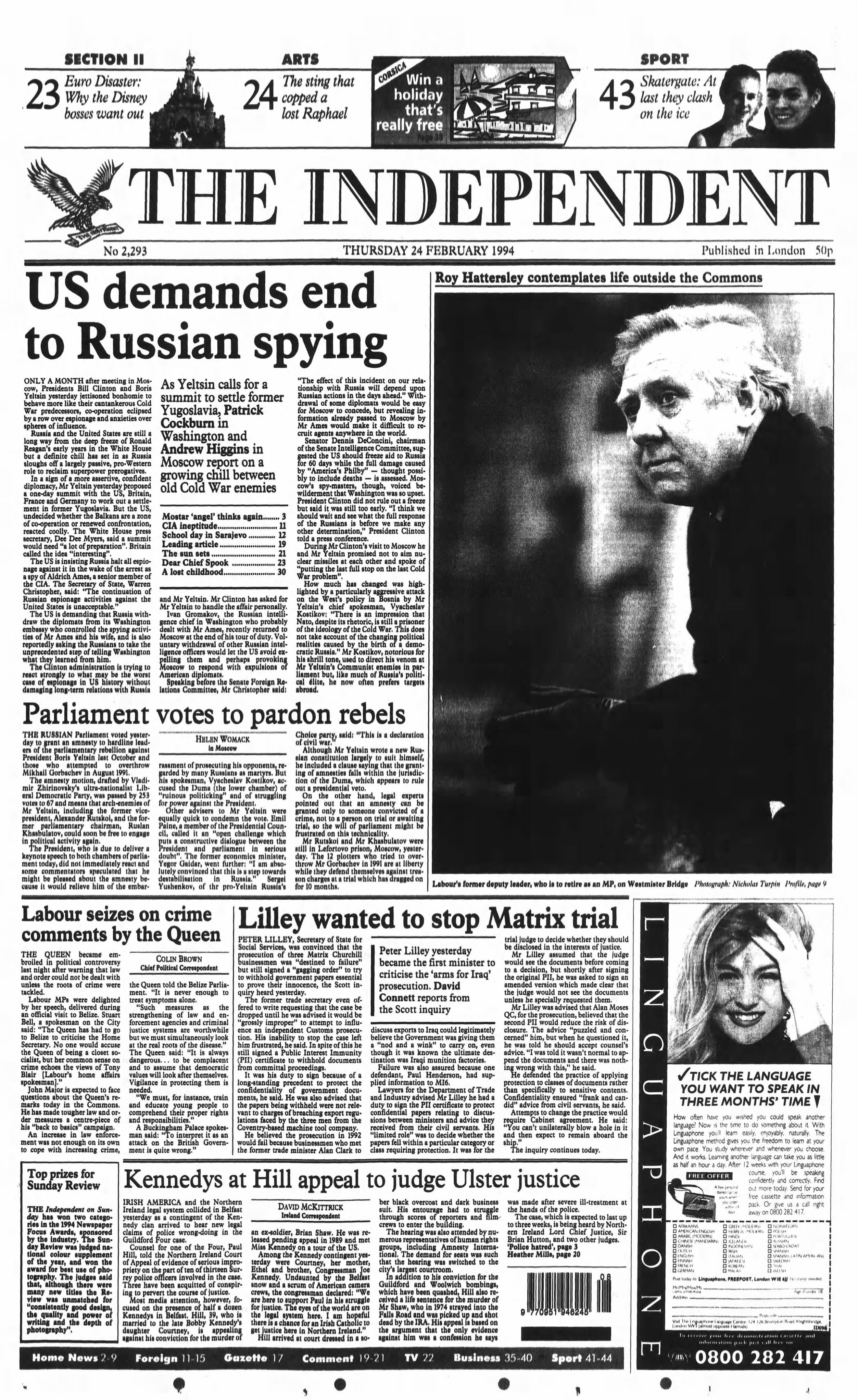 24 February 1994 – US demands Russia halt spying after Ames arrest